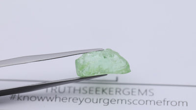 A well-shaped tourmaline from Afghanistan, exhibiting the distinctive green glow with a slight blue secondary hue characteristic of some Afghan tourmalines. Eyeclean.